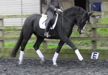 Bay gelding, born 5th May 2008. Approx 146cm. By Hilken's Black Delight out of St.Pr.St Naturell (Nantano x Durello). Huge potential for the FEI dressage arena, very scopey elastic paces. Very sweet, intelligent temperament.
