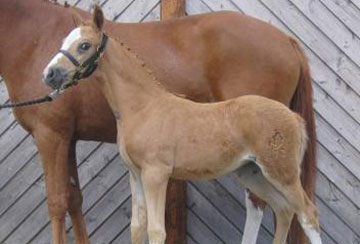 Full brother to Fifi (BKS Fantasia) and Felix (BKS Furstenix), a gorgeous brown bay colt with "look at me" presence. A late foal, by embryo transfer after Real Ruby refused for the past two years to carry a foal.